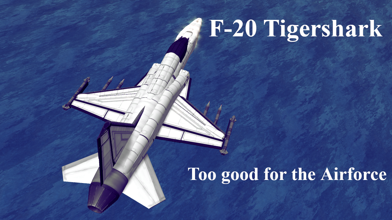 A stock aircraft called F-20 Tigershark. Built with 482 of the finest parts, its root part is miniFuselage.