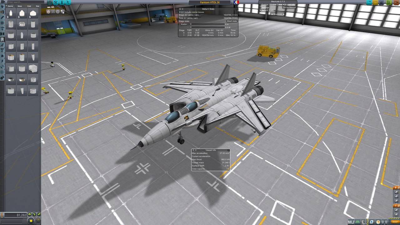 A stock aircraft called Fantom VTOL IX. Built with 128 of the finest parts, its root part is Mark2Cockpit.